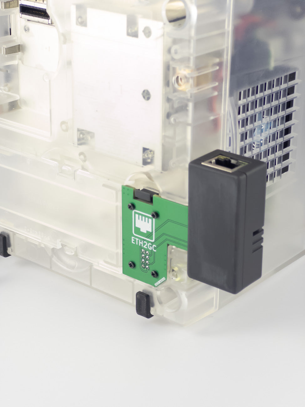 ETH2GC is an aftermarket ethernet module for Nintendo GameCube® leveraging Broadband Adapter emulation in Swiss. Experience online and LAN multiplayer gaming on real hardware for a fraction of the price of the original Broadband Adapter!